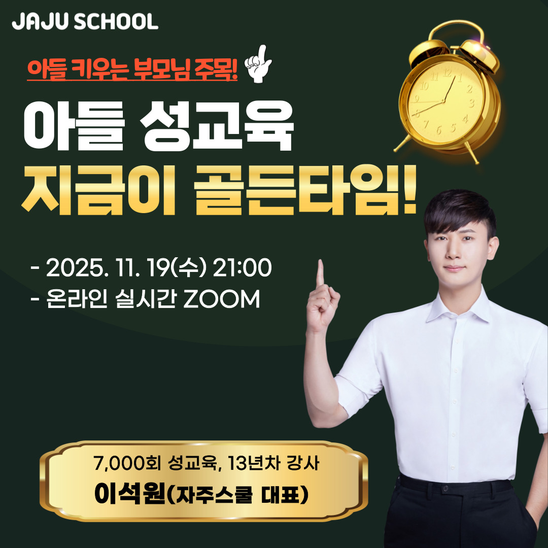 📌 11월 19일(화) 밤 9시, 자주스쿨 성교육 전문가 이석원 대표와 함께