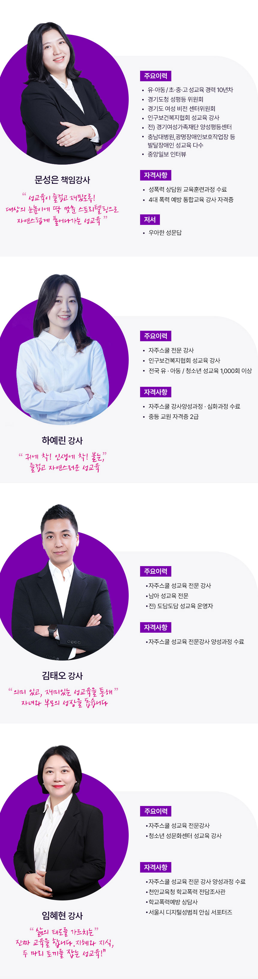 성별에 따른 구분이 아닌, 사람과 사람 사이의 존중과 배려를 교육합니다.