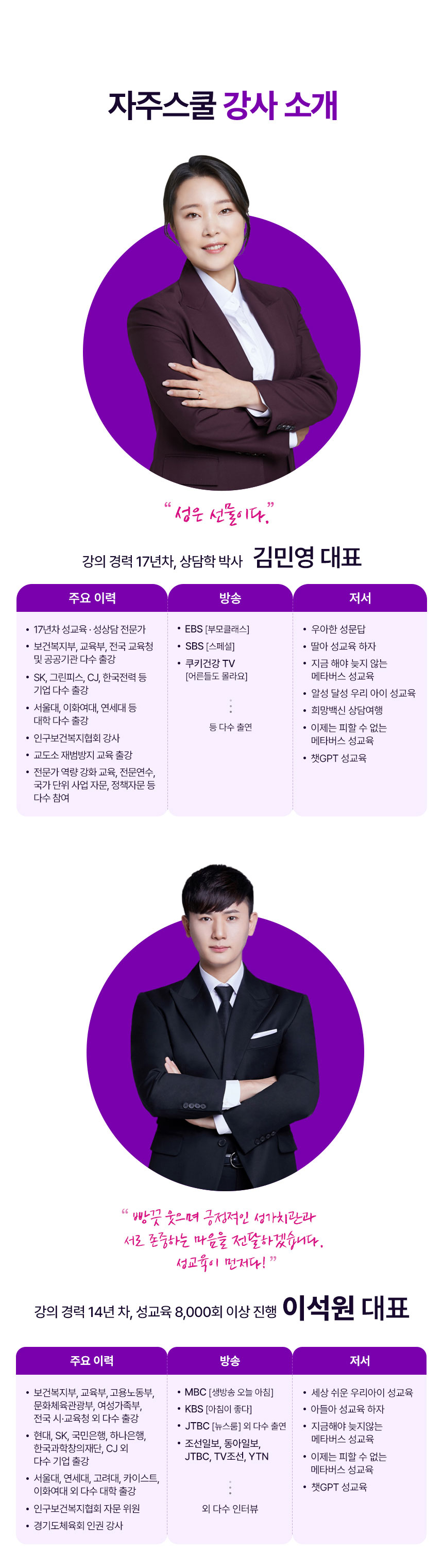 자주스쿨의 소셜미디어를 통해성교육의 다양한 볼거리를 제공합니다.